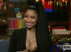 Ahora, sus prendas le hicieron una mala jugada durante una entrevista con Andy Cohen en el programa Watch What Happens Live. Y es que Nicki Minaj portó un vestuario negro muy sensual, que llamaba la atención por su atrevido escote, sin embargo, nadie se imaginó que se alcanzaría a ver uno de sus pezones.