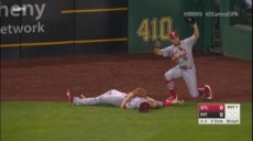 Bourjos, jugando el central, fue a la tierra cuando capturó la pelota al tirarse por ella y su rodilla izquierda hizo contacto con la cara de Piscotty.