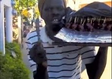 Su canción, con un ritmo muy pegajoso de origen haitiano como lo es el Gaga, la canta y la toca con el mismo cuchillo con que corta los dulces cuando lo vende a sus clientes y… Mesié, felizmente (creo yo) mantiene a su familia con este humilde trabajo.