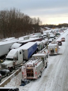 Por horas, el tráfico vehicular en una concurrida carretera interestatal que conecta a Chicago con Detroit se detuvo por completo, bloqueado por un choque múltiple entre más de 40 vehículos, muchos de ellos camiones con remolque.