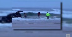 El video de un espectador capturó el dramático rescate de tres pequeños niños de Carolina del Sur, quienes estaban atrapados en el interior de una camioneta y fueron conducidos hacia las escabrosas aguas de Daytona Beach, el martes en la tarde, supuestamente por su madre.