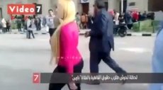 En el video se ve a una mujer rubia con una blusa de un llamativo color rosa perseguida por un grupo de hombres en la Universidad de El Cairo, mientras es escoltada por los guardias del centro educativo para evitar el acoso.