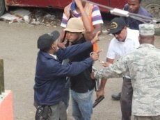 Los individuos que fueron identificados como Tony y el Mocho quienes encabezaron una turba que pretendía penetrar a la casa de Genrris García y que le lanzaron piedras, e hicieron disparos fueron replegados por la Policía a quienes se le incautó bombas de fabricación caseras y cuchillos filosos.