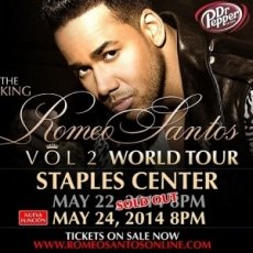 The King Romeo Santos” se estará presentando en el “Staples Center” de los Ángeles, donde ya vendió en su totalidad el concierto pautado para el día 22 de mayo.