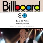 El carismático y popular artista Anthony Santos sigue su camino de ascenso sostenido en la lista tropical de la revista Billboard con su sencillo “Solo te amo” ubicándose esta semana en el puesto 10, logrando un ascenso real dentro del gusto popular latino en Estados Unidos y Puerto Rico.